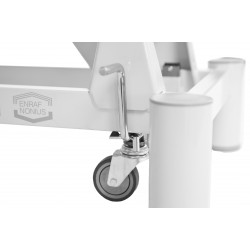 Avec une géométrie de châssis offrant suffisamment d'espace sous la table pour les jambes du thérapeute, bénéficiant ainsi d'un grand confort. Mécanisme de levage de roues disponible en option.